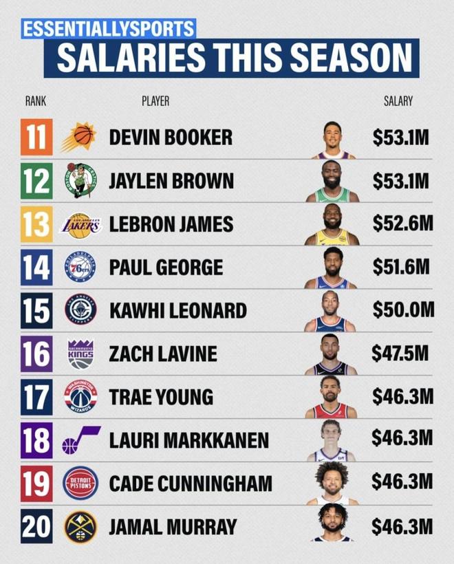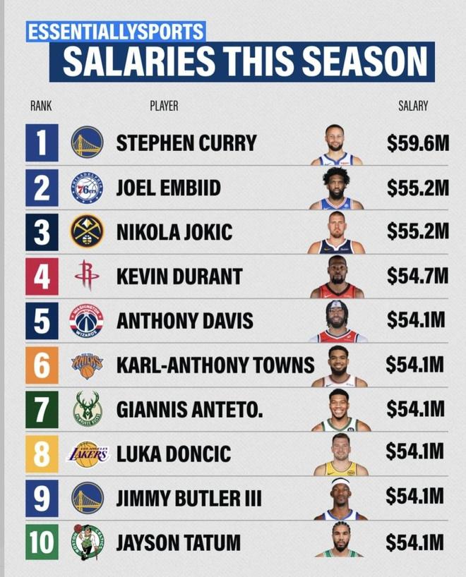 最近外媒整理了本賽季球員薪資榜,庫(kù)里排第1,恩比德、約基奇緊跟其后,一眼看過去全是五千萬美元起步的數(shù)字。更刺激的是,同一檔位里既有已經(jīng)三十多歲的老面孔,也有正當(dāng)打的新核心,球隊(duì)還分布在不同爭(zhēng)冠窗口里:有人拿的是當(dāng)下戰(zhàn)力的“即刻回報(bào)”,有人拿的是未來幾年繼續(xù)加碼的“長(zhǎng)期押注”。同樣是頂薪,誰的合同最值、誰的合同最容易被吐槽,就得把國(guó)籍、年齡、所在隊(duì)、人民幣換算和合同截止時(shí)間一起攤開看了。